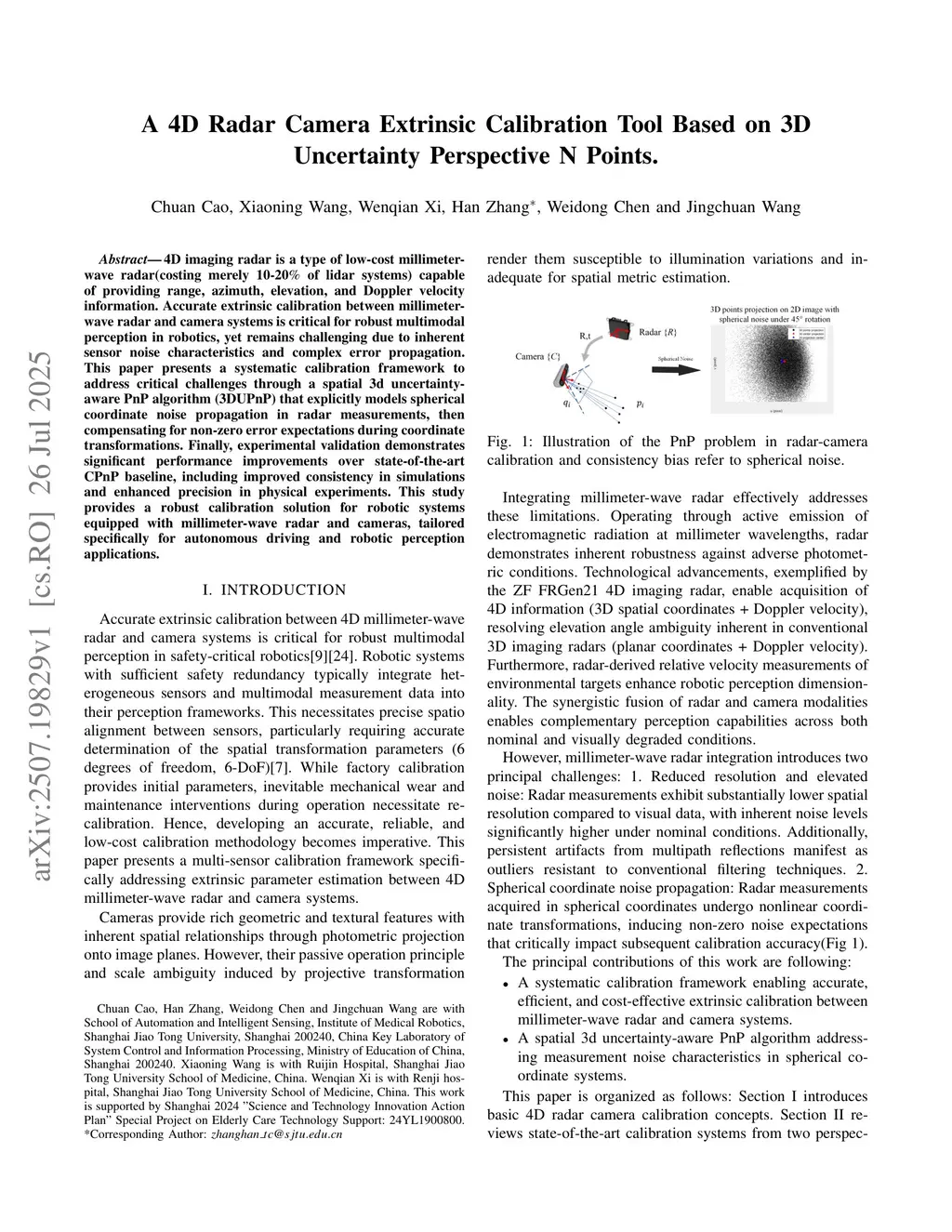A 4D Radar Camera Extrinsic Calibration Tool Based on 3D Uncertainty Perspective N Points