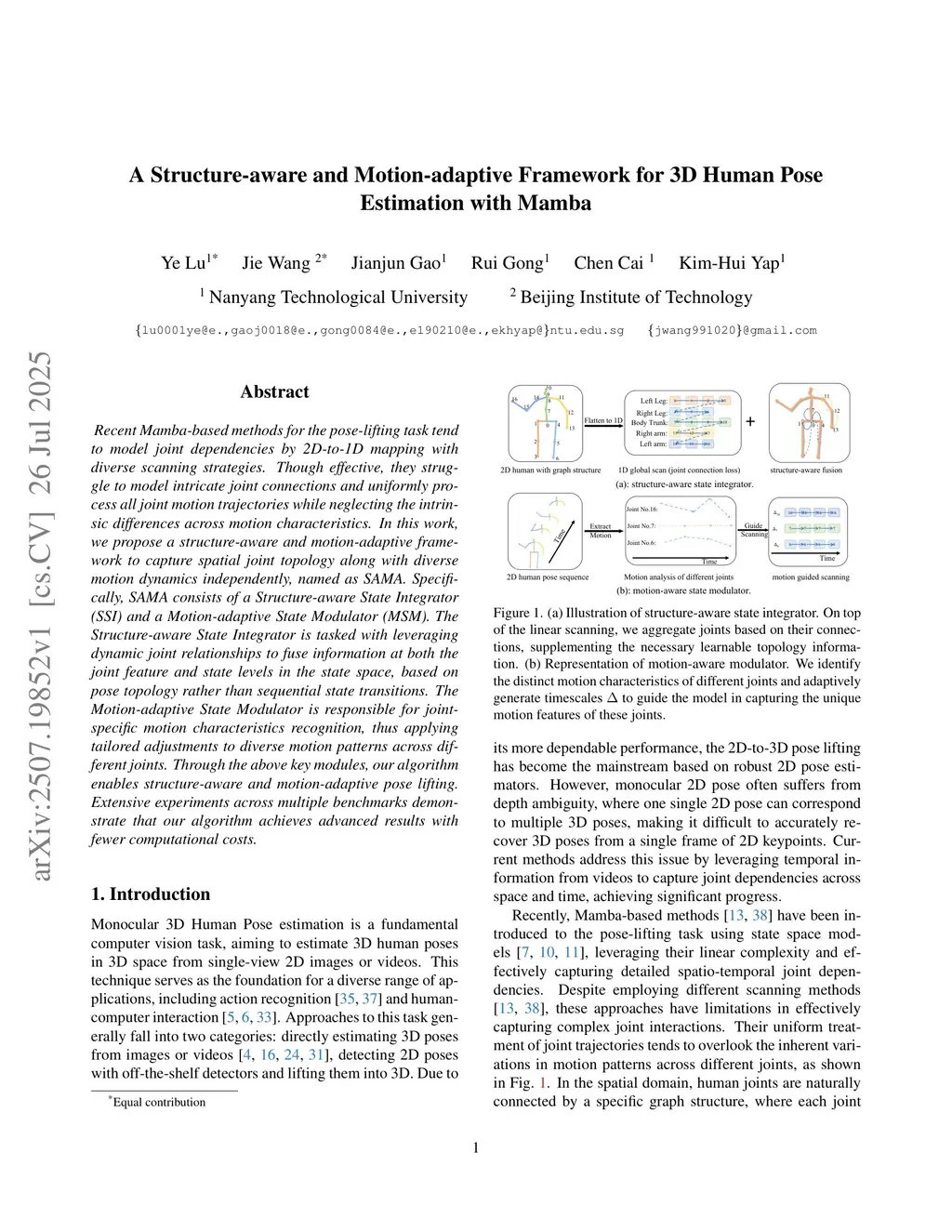 A Structure-aware and Motion-adaptive Framework for 3D Human Pose Estimation with Mamba
