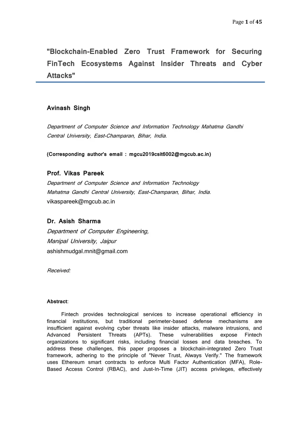 "Blockchain-Enabled Zero Trust Framework for Securing FinTech Ecosystems Against Insider Threats and Cyber Attacks"