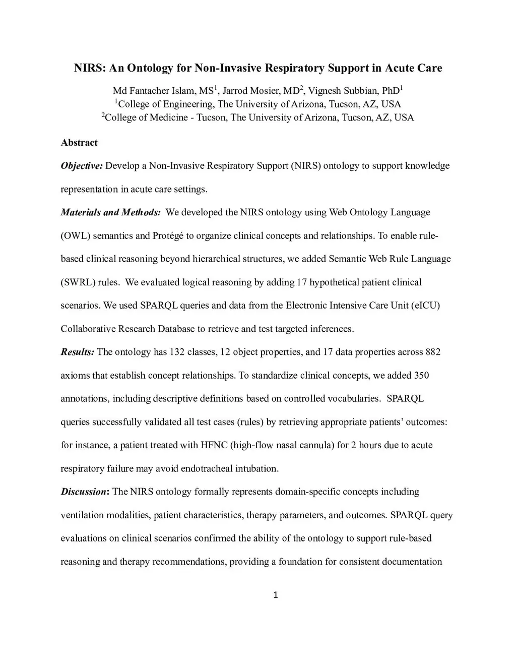 Development and Evaluation of an Ontology for Non-Invasive Respiratory Support in Acute Care
