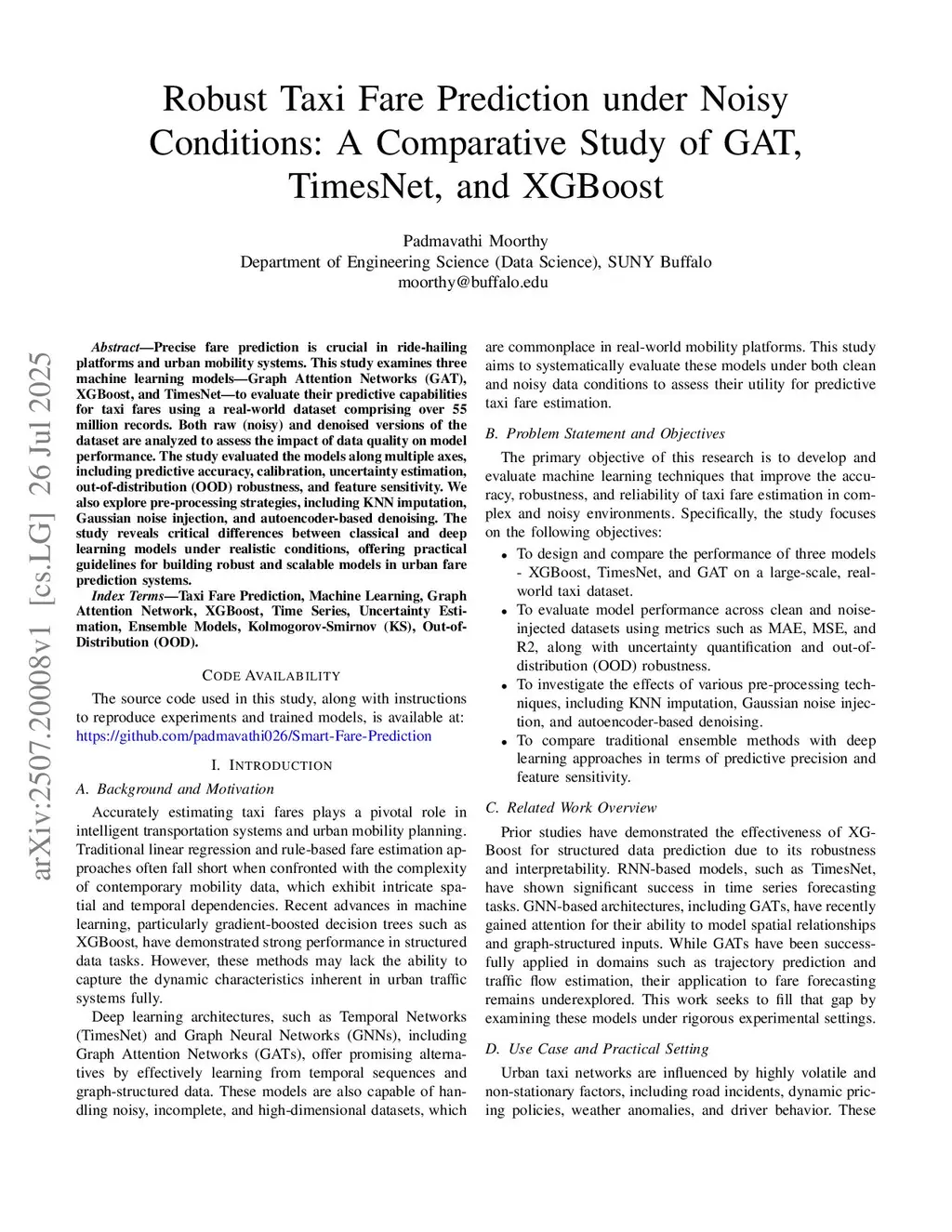 Robust Taxi Fare Prediction Under Noisy Conditions: A Comparative Study of GAT, TimesNet, and XGBoost
