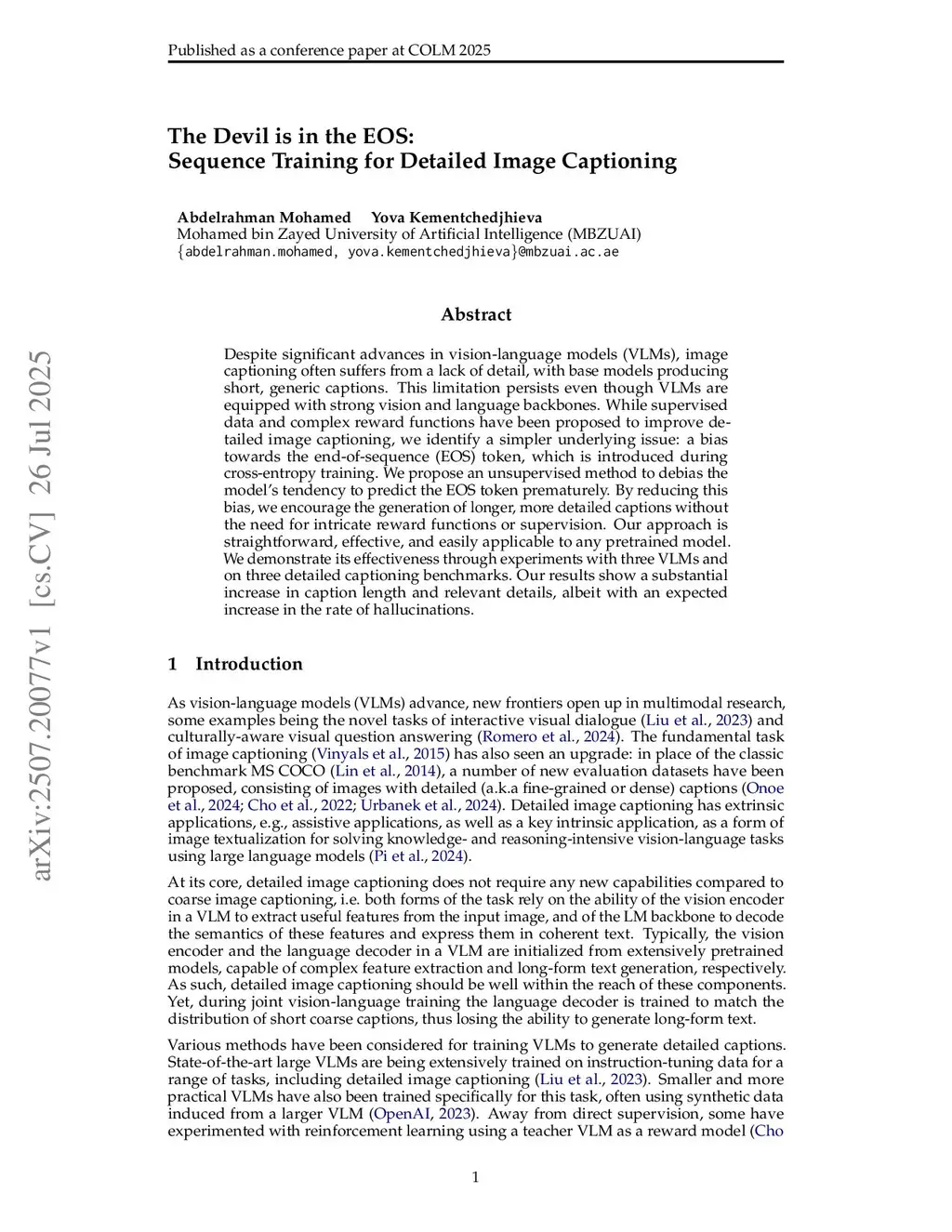 The Devil is in the EOS: Sequence Training for Detailed Image Captioning