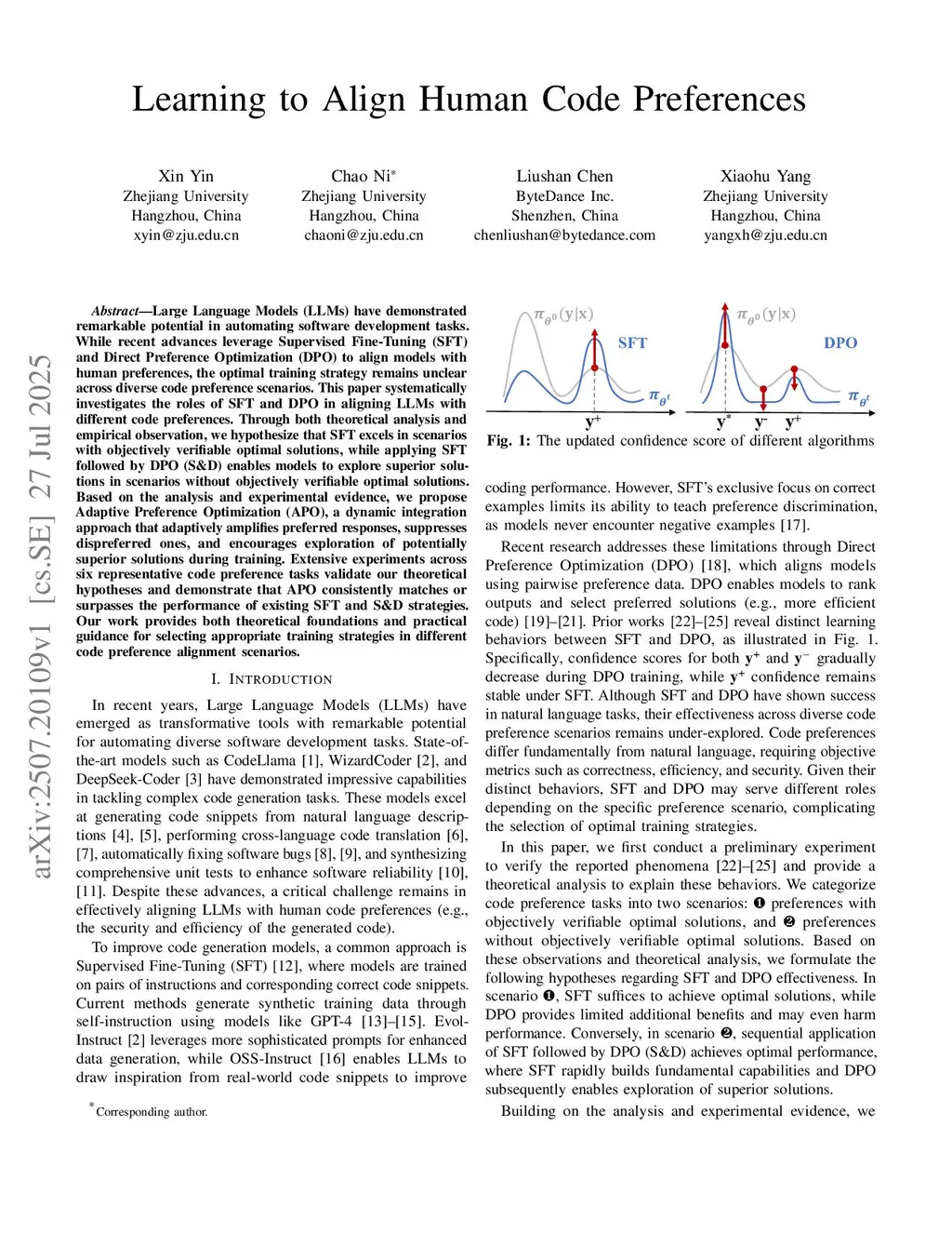 Large Language Models (LLMs) have demonstrated remarkable potential in automating software development tasks. While recent advances leverage Supervised Fine-Tuning (SFT) and Direct Preference Optimization (DPO) to align models with human preferences, the optimal training strategy remains unclear across diverse code preference scenarios. This paper systematically investigates the roles of SFT and DPO in aligning LLMs with different code preferences. Through both theoretical analysis and empirical observation, we hypothesize that SFT excels in scenarios with objectively verifiable optimal solutions, while applying SFT followed by DPO (S&D) enables models to explore superior solutions in scenarios without objectively verifiable optimal solutions. Based on the analysis and experimental evidence, we propose Adaptive Preference Optimization (APO), a dynamic integration approach that adaptively amplifies preferred responses, suppresses dispreferred ones, and encourages exploration of potentially superior solutions during training. Extensive experiments across six representative code preference tasks validate our theoretical hypotheses and demonstrate that APO consistently matches or surpasses the performance of existing SFT and S&D strategies. Our work provides both theoretical foundations and practical guidance for selecting appropriate training strategies in different code preference alignment scenarios.