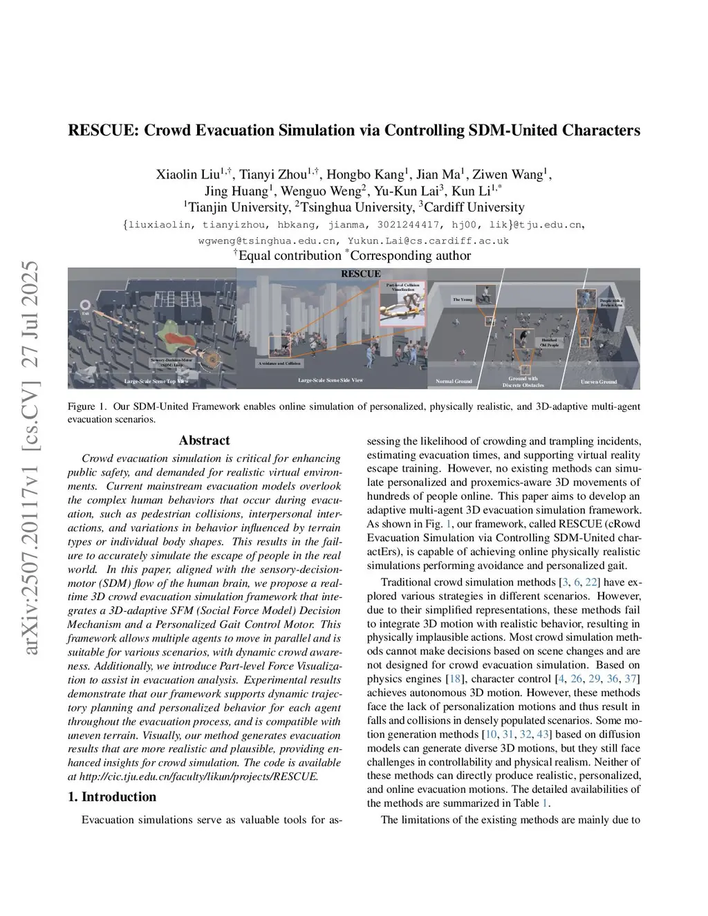 RESCUE: Crowd Evacuation Simulation via Controlling SDM-United Characters