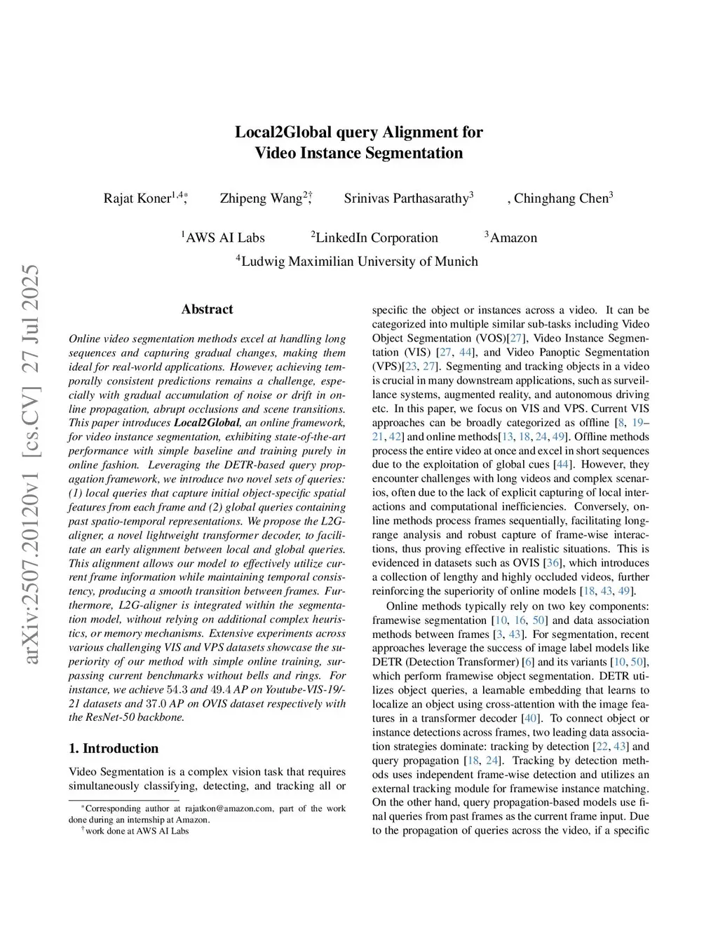 Local2Global query Alignment for Video Instance Segmentation