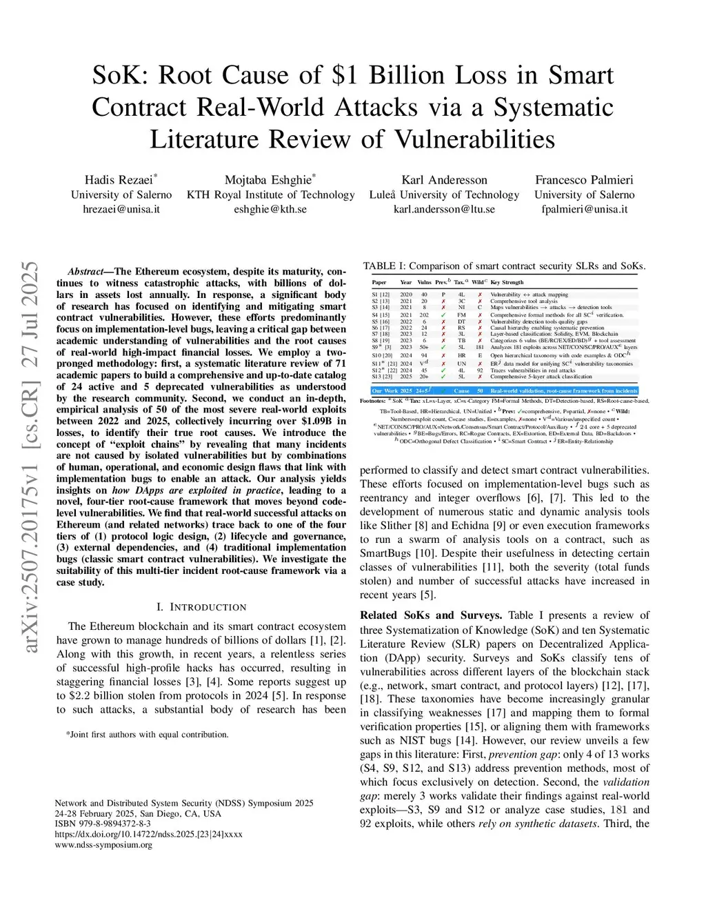 SoK: Root Cause of \$1 Billion Loss in Smart Contract Real-World Attacks via a Systematic Literature Review of Vulnerabilities