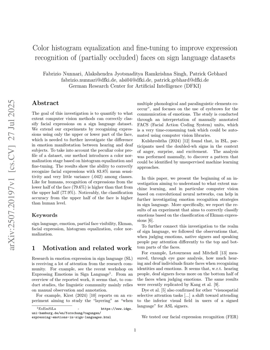 Color histogram equalization and fine-tuning to improve expression recognition of (partially occluded) faces on sign language datasets
