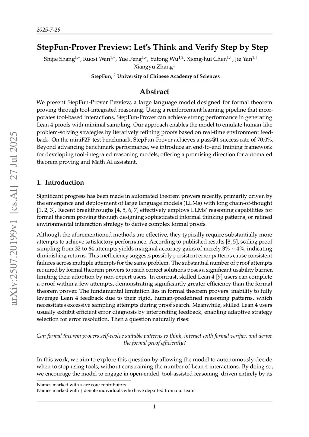 StepFun-Prover Preview: Let's Think and Verify Step by Step