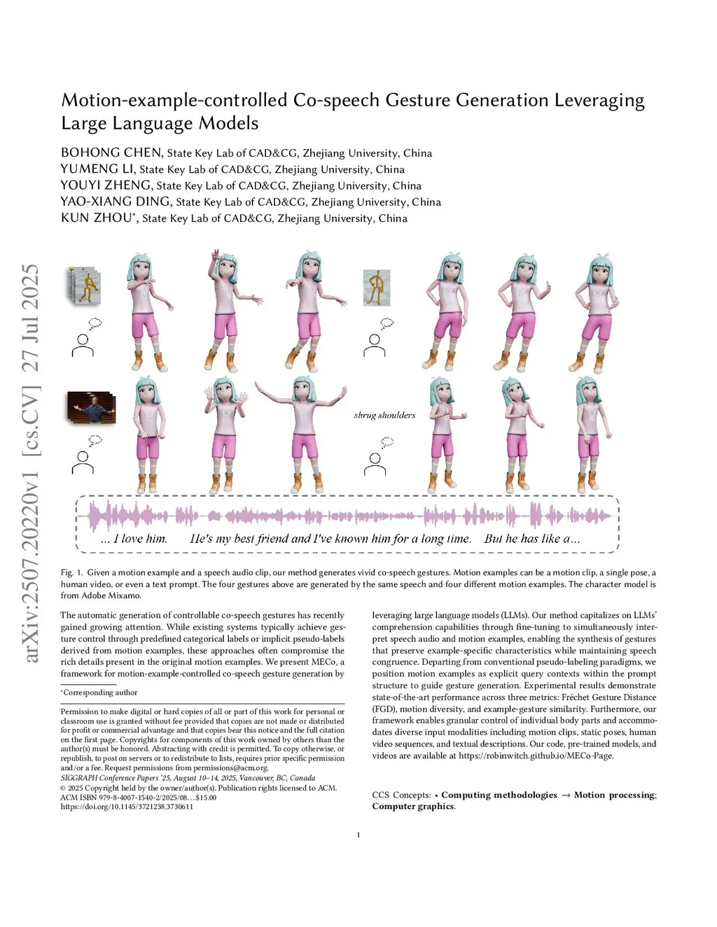 Motion-example-controlled Co-speech Gesture Generation Leveraging Large Language Models