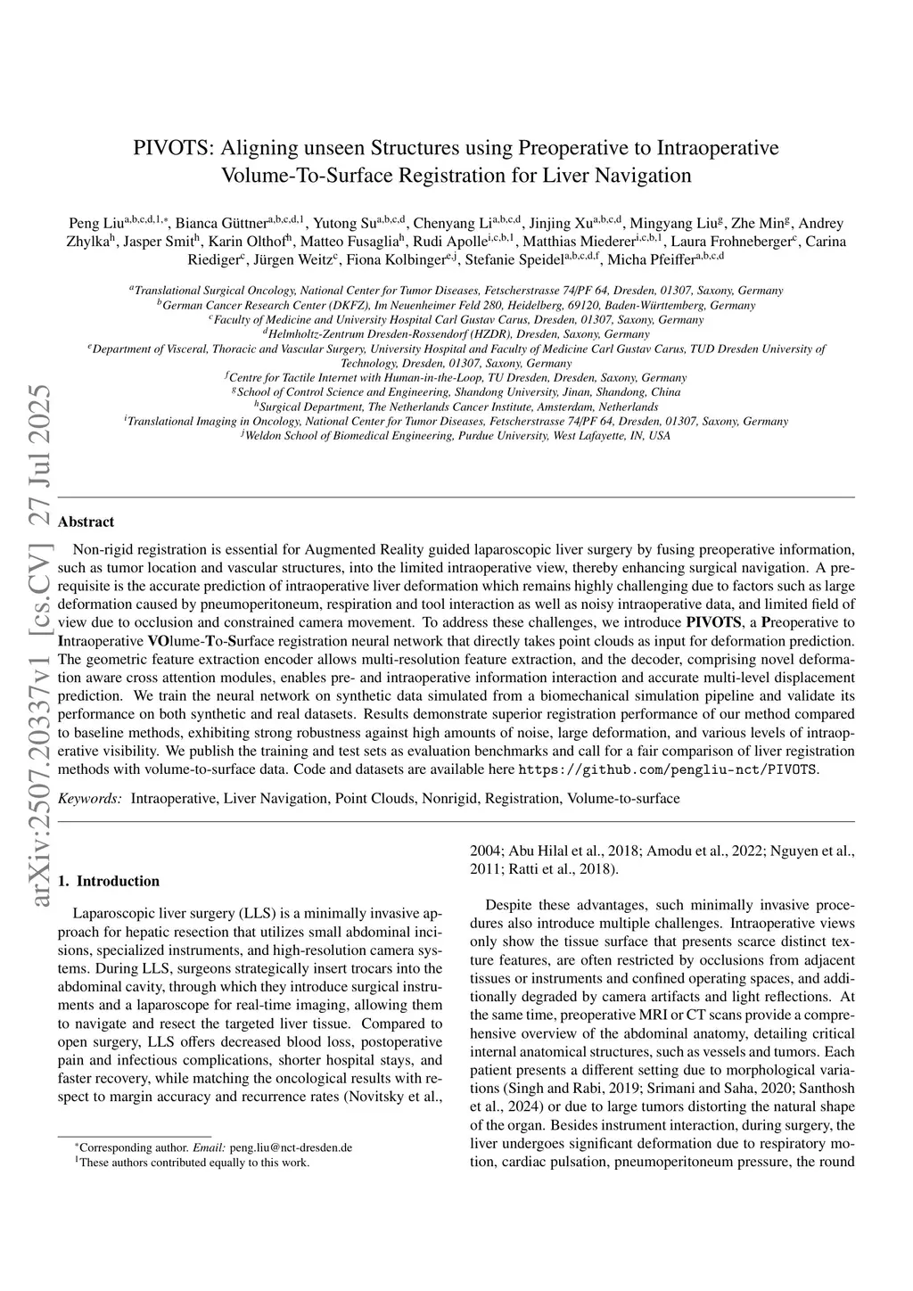 PIVOTS: Aligning unseen Structures using Preoperative to Intraoperative Volume-To-Surface Registration for Liver Navigation