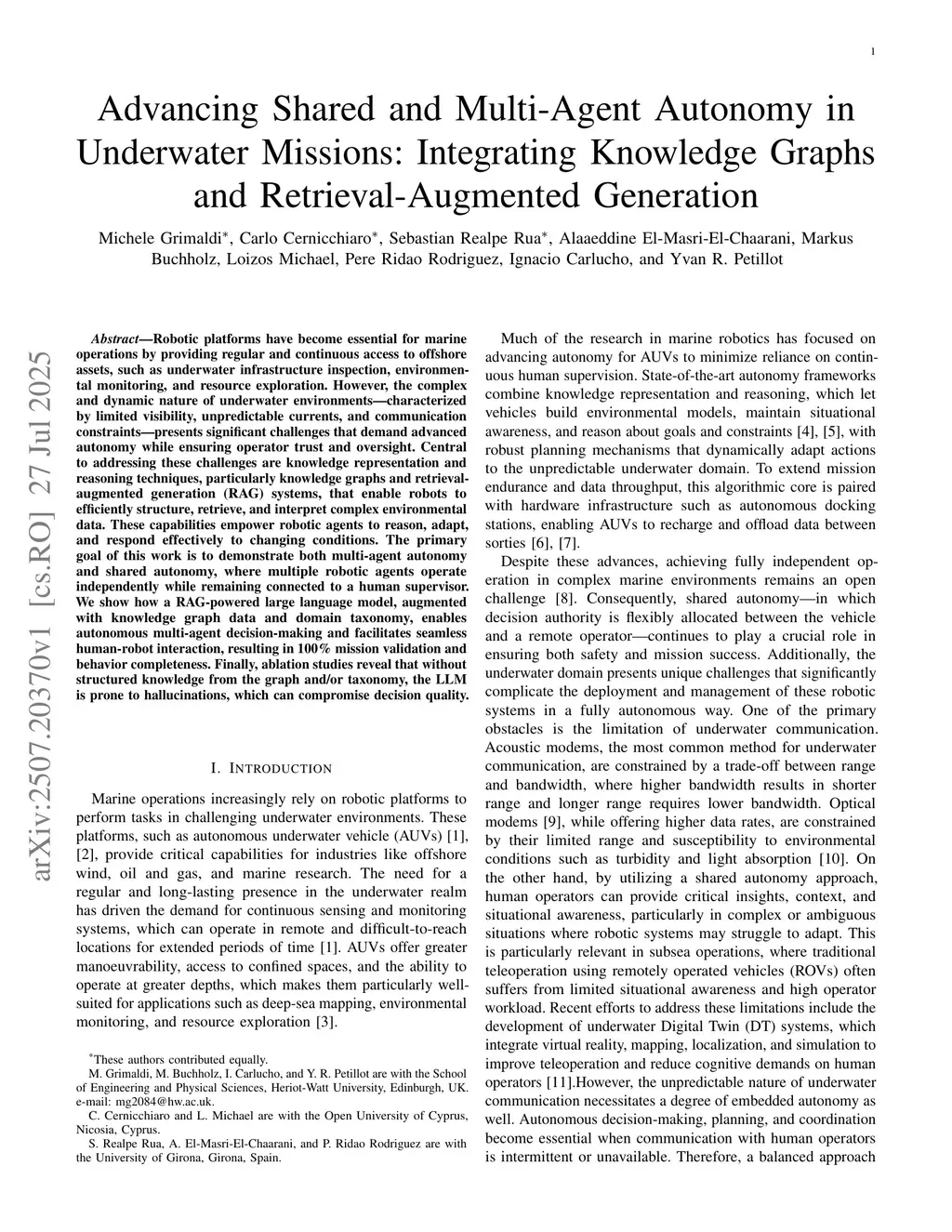 Advancing Shared and Multi-Agent Autonomy in Underwater Missions: Integrating Knowledge Graphs and Retrieval-Augmented Generation