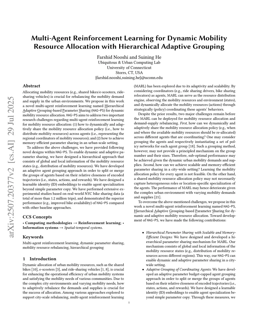 Multi-Agent Reinforcement Learning for Dynamic Mobility Resource Allocation with Hierarchical Adaptive Grouping