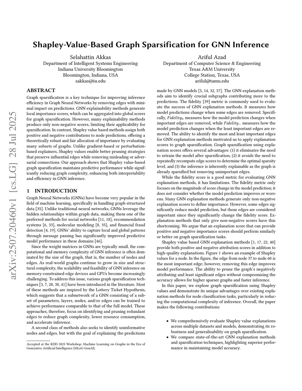 Shapley-Value-Based Graph Sparsification for GNN Inference