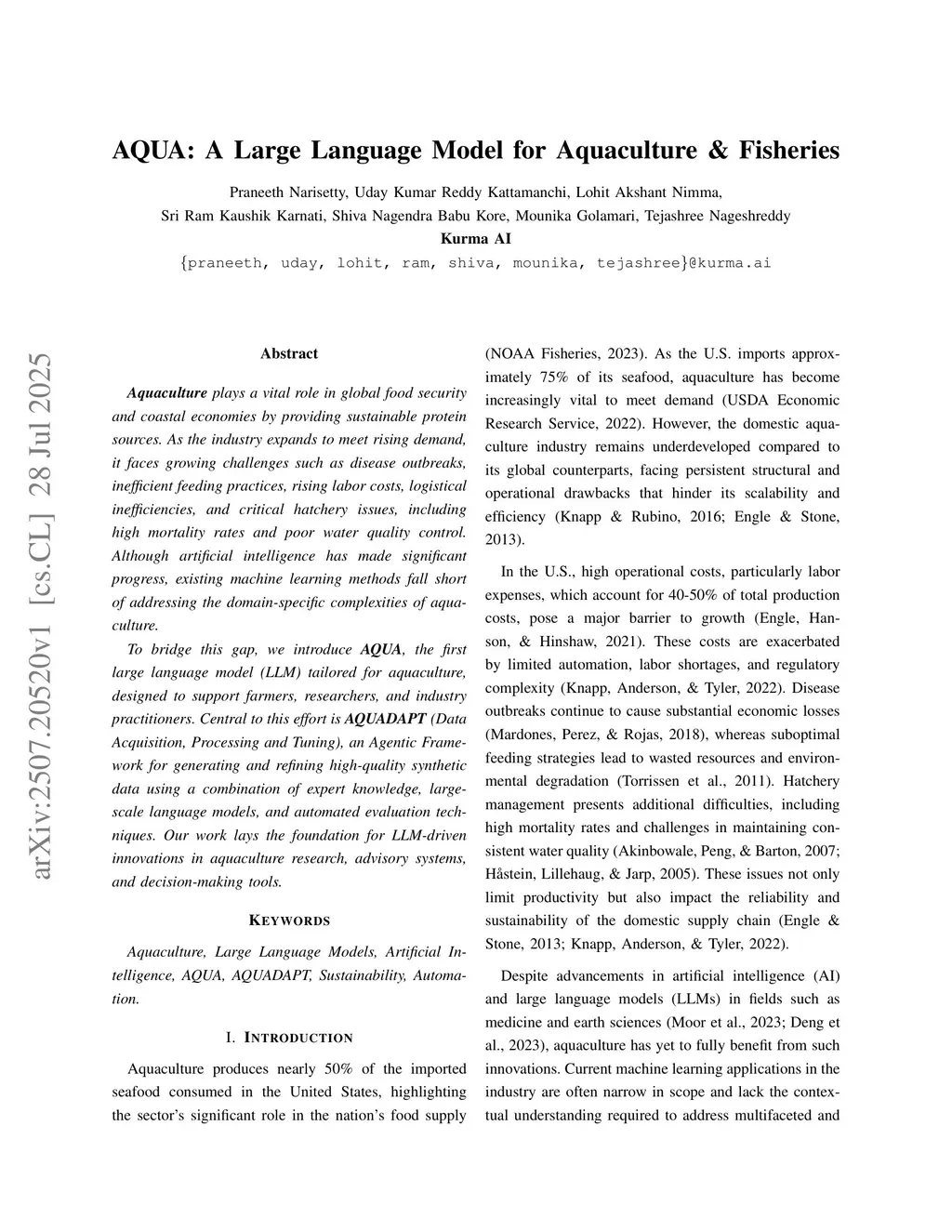 AQUA: A Large Language Model for Aquaculture & Fisheries