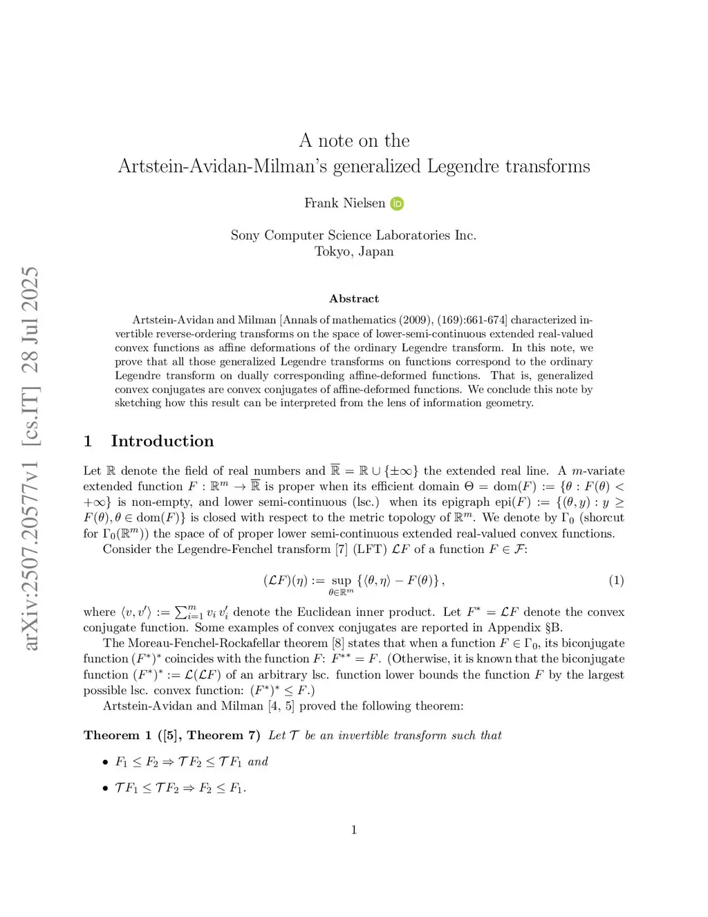 Artstein-Avidan and Milman [Annals of mathematics (2009), (169):661-674] characterized invertible reverse-ordering transforms on the space of lower semi-continuous extended real-valued convex functions as affine deformations of the ordinary Legendre transform. In this work, we first prove that all those generalized Legendre transforms on functions correspond to the ordinary Legendre transform on dually corresponding affine-deformed functions: In short, generalized convex conjugates are ordinary convex conjugates of dually affine-deformed functions. Second, we explain how these generalized Legendre transforms can be derived from the dual Hessian structures of information geometry.