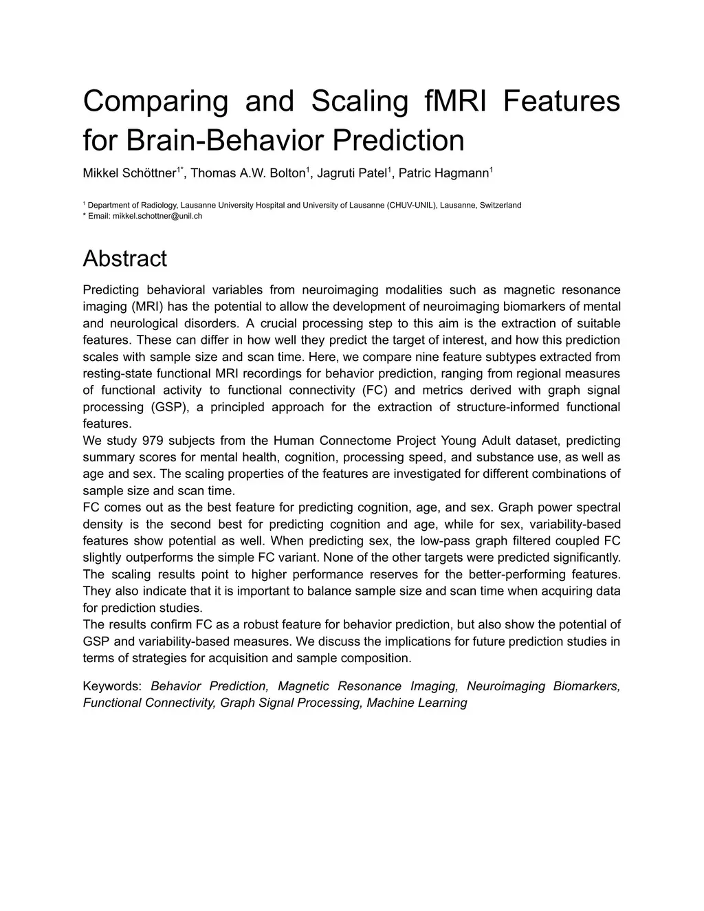 Comparing and Scaling fMRI Features for Brain-Behavior Prediction