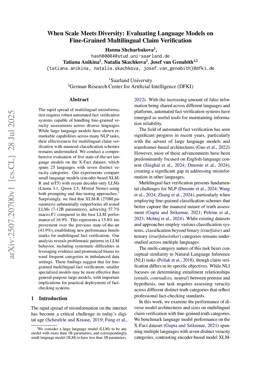 When Scale Meets Diversity: Evaluating Language Models on Fine-Grained Multilingual Claim Verification