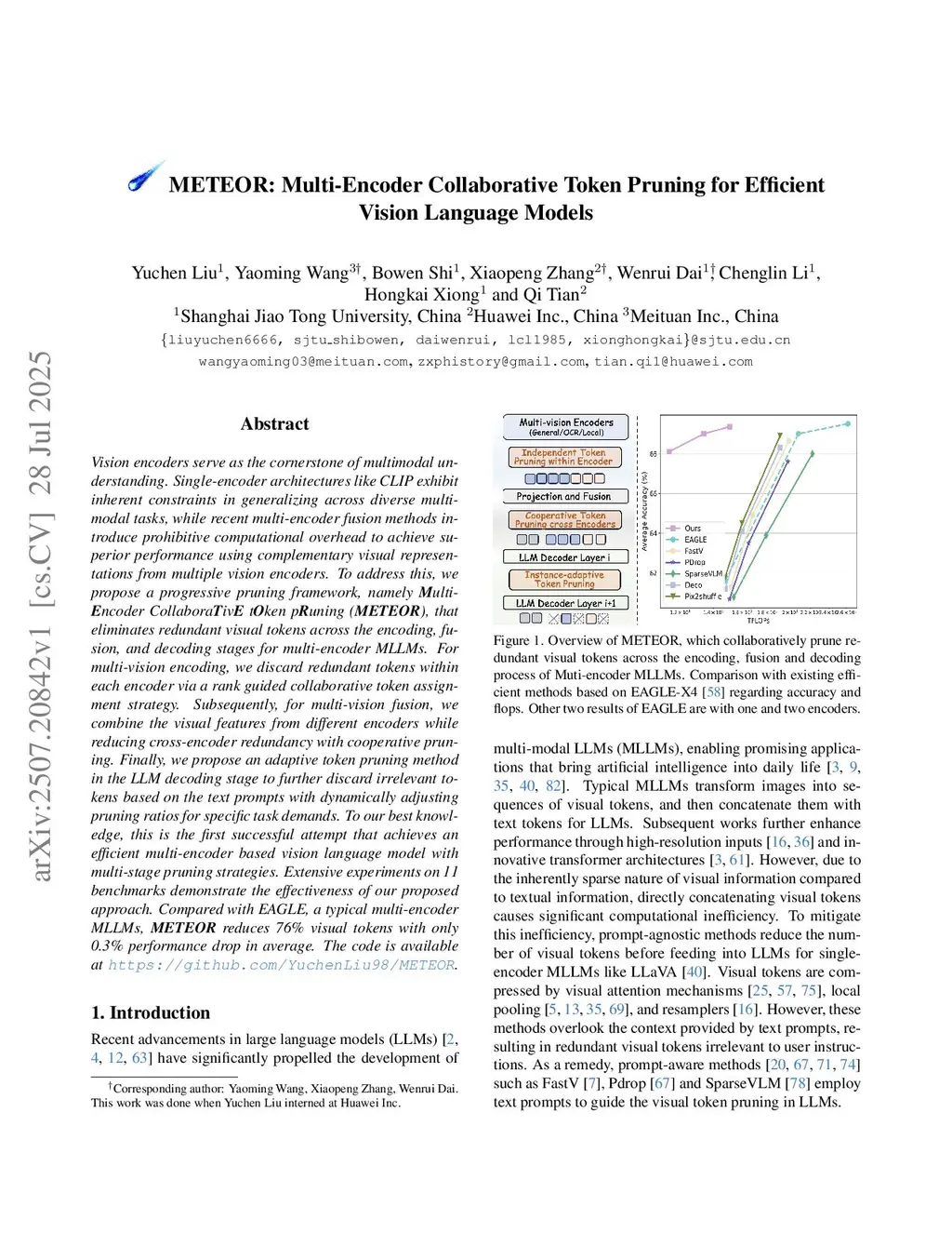 METEOR: Multi-Encoder Collaborative Token Pruning for Efficient Vision Language Models