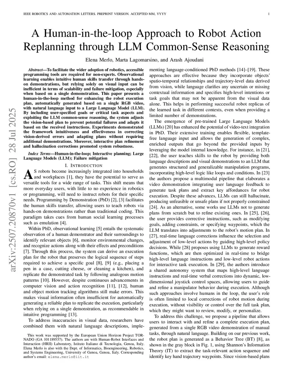 A Human-in-the-loop Approach to Robot Action Replanning through LLM Common-Sense Reasoning