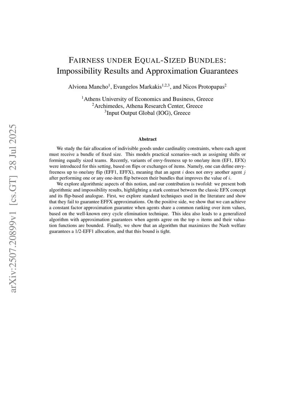 We study the fair allocation of indivisible goods under cardinality constraints, where each agent must receive a bundle of fixed size. This models practical scenarios, such as assigning shifts or forming equally sized teams. Recently, variants of envy-freeness up to one/any item (EF1, EFX) were introduced for this setting, based on flips or exchanges of items. Namely, one can define envy-freeness up to one/any flip (EFF1, EFFX), meaning that an agent does not envy another agent after performing one or any one-item flip between their bundles that improves the value of .We explore algorithmic aspects of this notion, and our contribution is twofold: we present both algorithmic and impossibility results, highlighting a stark contrast between the classic EFX concept and its flip-based analogue. First, we explore standard techniques used in the literature and show that they fail to guarantee EFFX approximations. On the positive side, we show that we can achieve a constant factor approximation guarantee when agents share a common ranking over item values, based on the well-known envy cycle elimination technique. This idea also leads to a generalized algorithm with approximation guarantees when agents agree on the top items and their valuation functions are bounded. Finally, we show that an algorithm that maximizes the Nash welfare guarantees a 1/2-EFF1 allocation, and that this bound is tight.