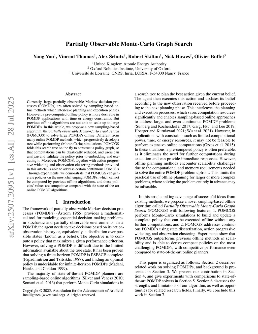 Currently, large partially observable Markov decision processes (POMDPs) are often solved by sampling-based online methods which interleave planning and execution phases. However, a pre-computed offline policy is more desirable in POMDP applications with time or energy constraints. But previous offline algorithms are not able to scale up to large POMDPs. In this article, we propose a new sampling-based algorithm, the partially observable Monte-Carlo graph search (POMCGS) to solve large POMDPs offline. Different from many online POMDP methods, which progressively develop a tree while performing (Monte-Carlo) simulations, POMCGS folds this search tree on the fly to construct a policy graph, so that computations can be drastically reduced, and users can analyze and validate the policy prior to embedding and executing it. Moreover, POMCGS, together with action progressive widening and observation clustering methods provided in this article, is able to address certain continuous POMDPs. Through experiments, we demonstrate that POMCGS can generate policies on the most challenging POMDPs, which cannot be computed by previous offline algorithms, and these policies' values are competitive compared with the state-of-the-art online POMDP algorithms.