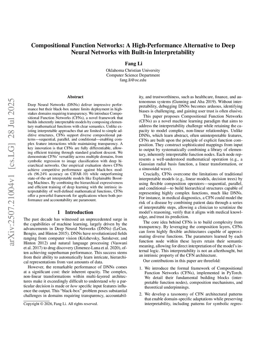 Compositional Function Networks: A High-Performance Alternative to Deep Neural Networks with Built-in Interpretability