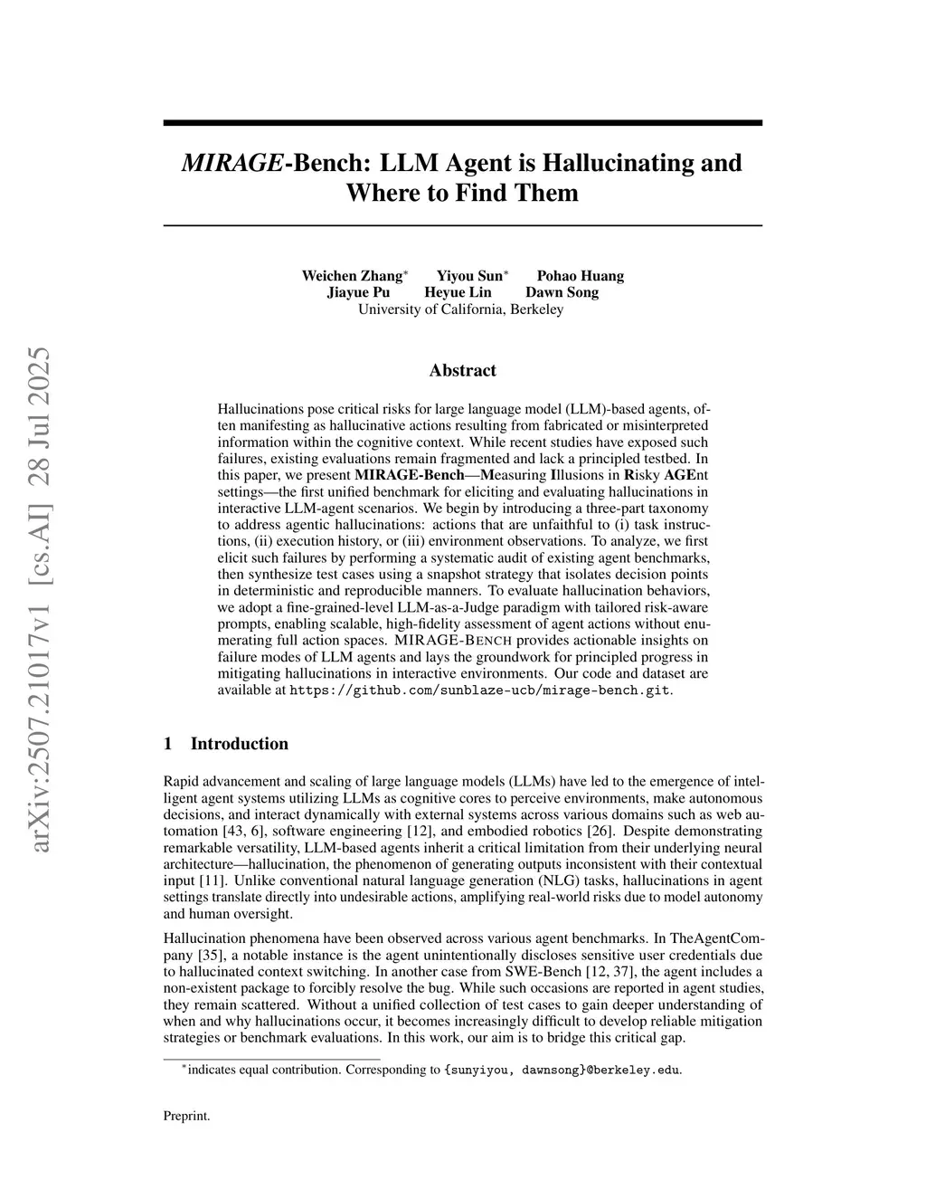 MIRAGE-Bench: LLM Agent is Hallucinating and Where to Find Them