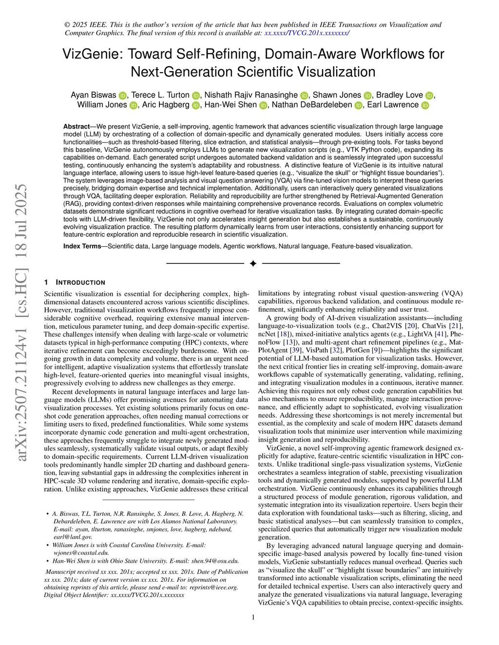 VizGenie: Toward Self-Refining, Domain-Aware Workflows for Next-Generation Scientific Visualization