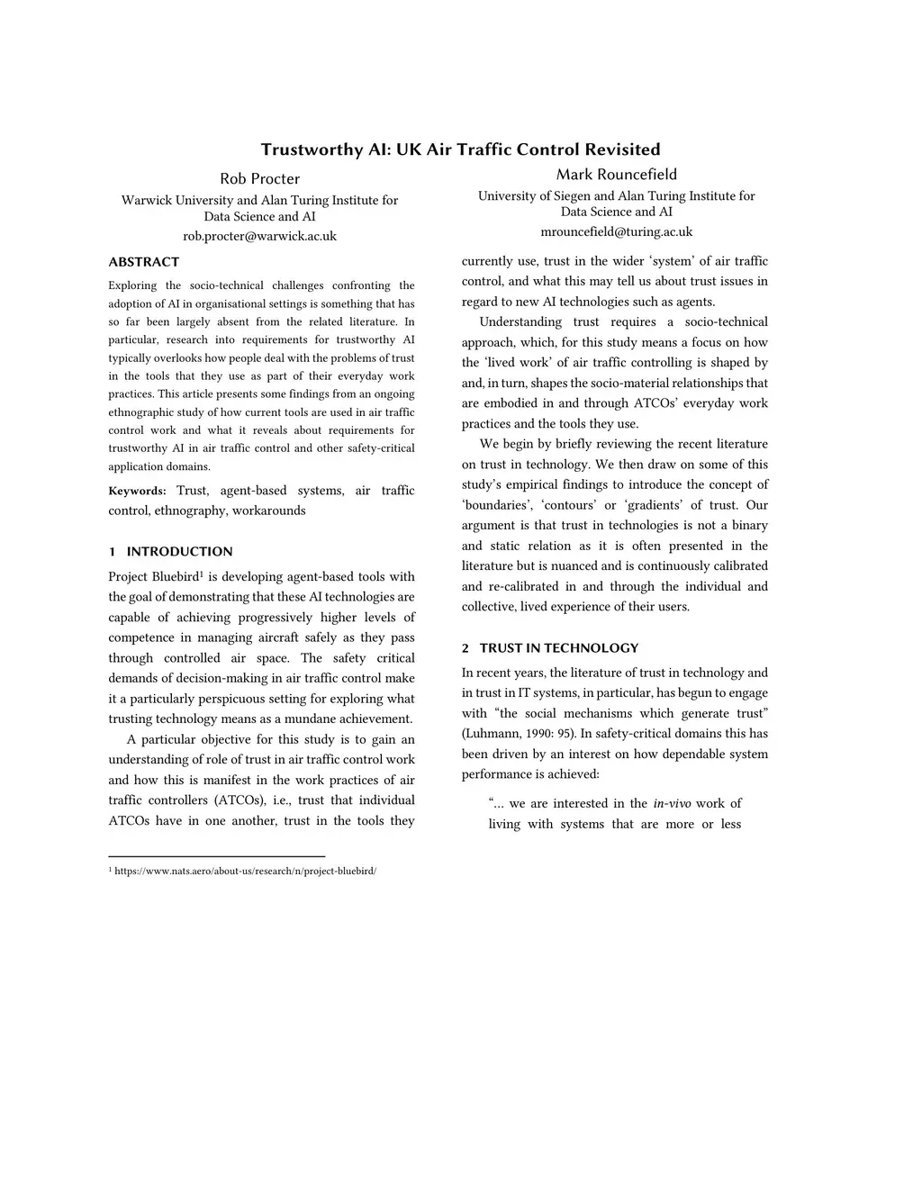 Exploring the socio-technical challenges confronting the adoption of AI in organisational settings is something that has so far been largely absent from the related literature. In particular, research into requirements for trustworthy AI typically overlooks how people deal with the problems of trust in the tools that they use as part of their everyday work practices. This article presents some findings from an ongoing ethnographic study of how current tools are used in air traffic control work and what it reveals about requirements for trustworthy AI in air traffic control and other safety-critical application domains.