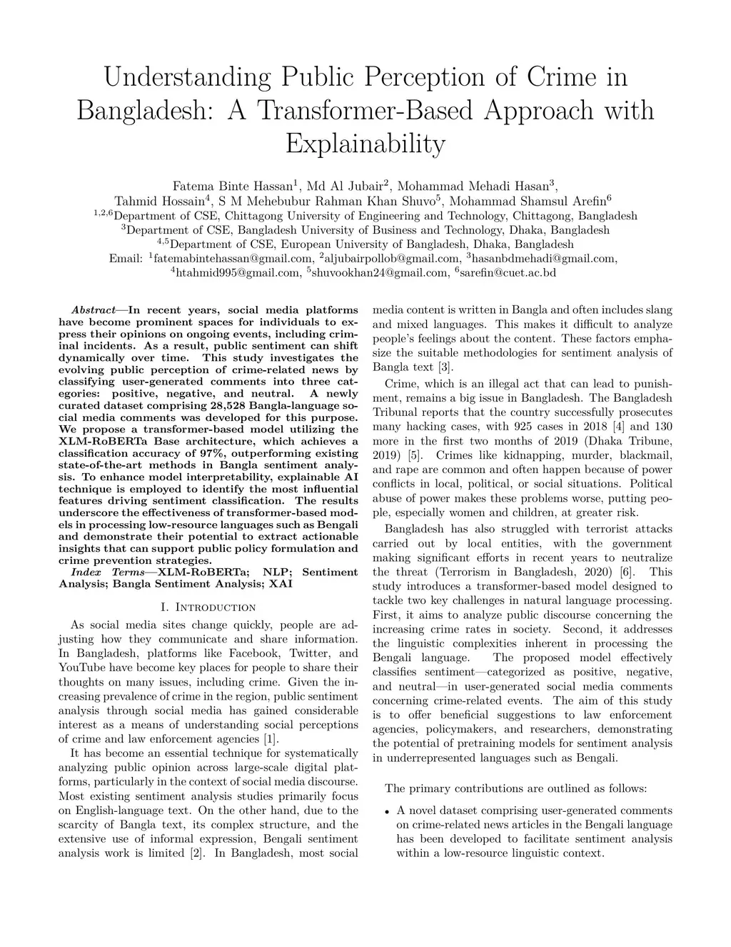 Understanding Public Perception of Crime in Bangladesh: A Transformer-Based Approach with Explainability