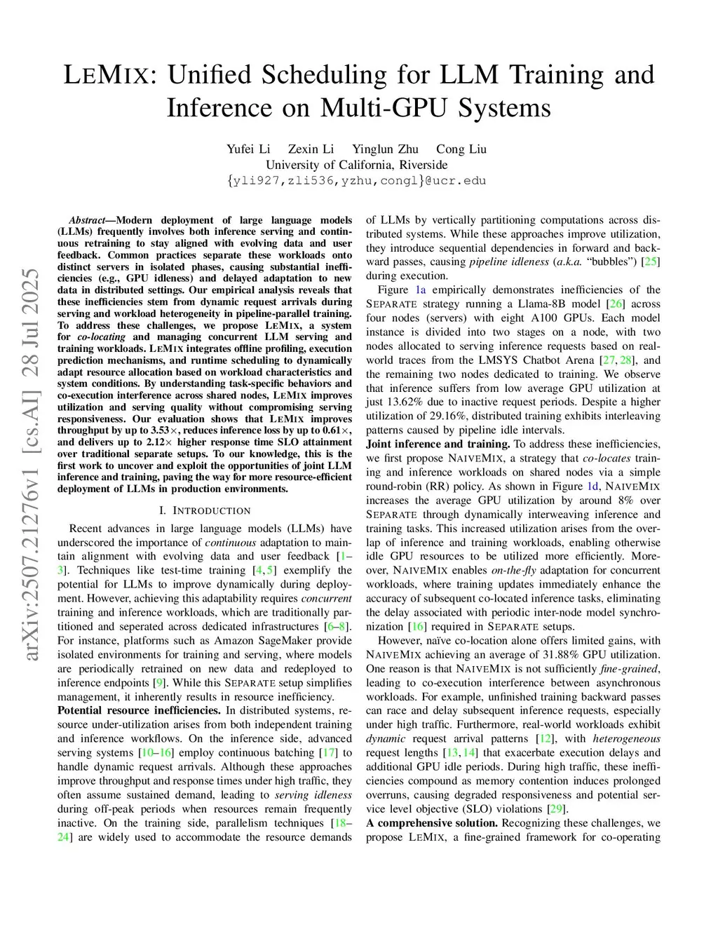 LeMix: Unified Scheduling for LLM Training and Inference on Multi-GPU Systems
