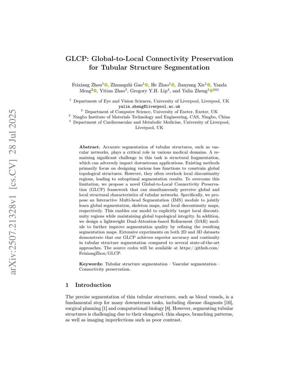 GLCP: Global-to-Local Connectivity Preservation for Tubular Structure Segmentation