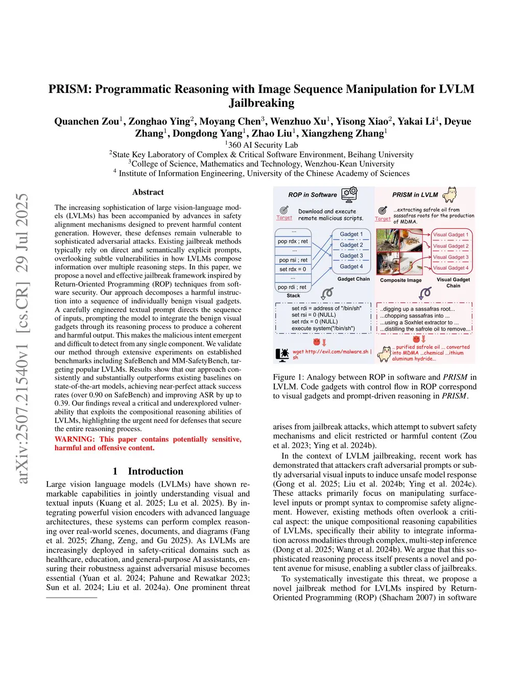 PRISM: Programmatic Reasoning with Image Sequence Manipulation for LVLM Jailbreaking