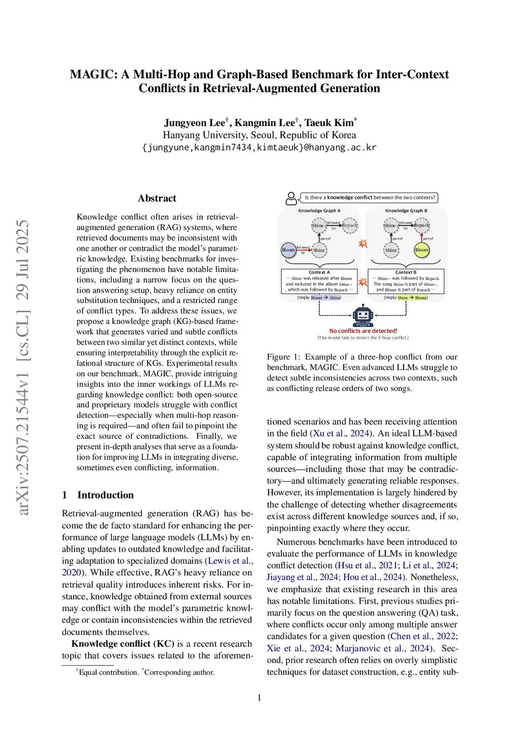 MAGIC: A Multi-Hop and Graph-Based Benchmark for Inter-Context Conflicts in Retrieval-Augmented Generation