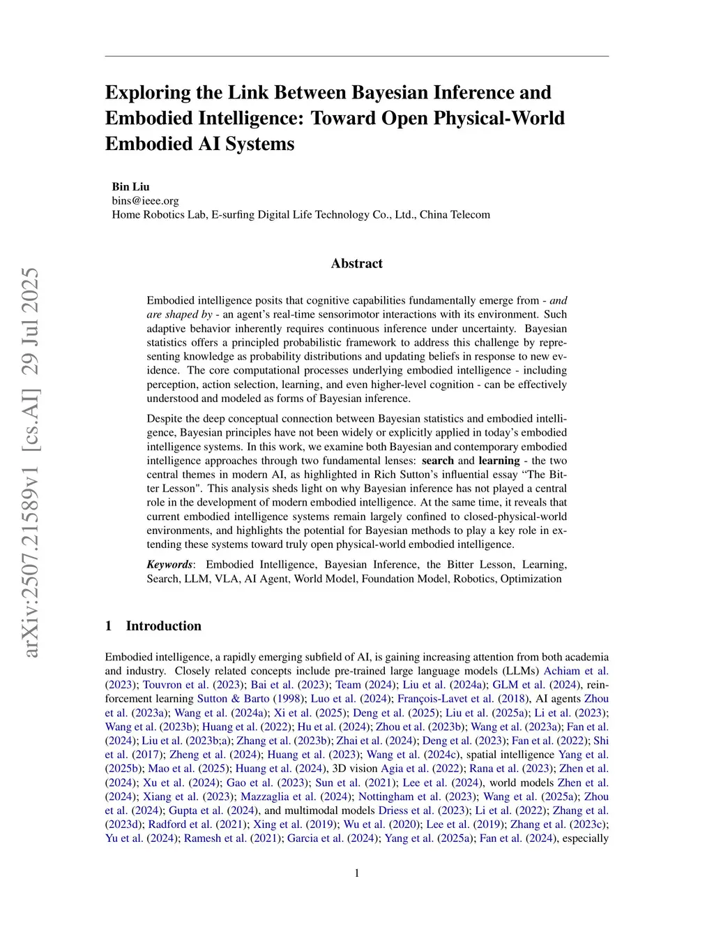 Exploring the Link Between Bayesian Inference and Embodied Intelligence: Toward Open Physical-World Embodied AI Systems