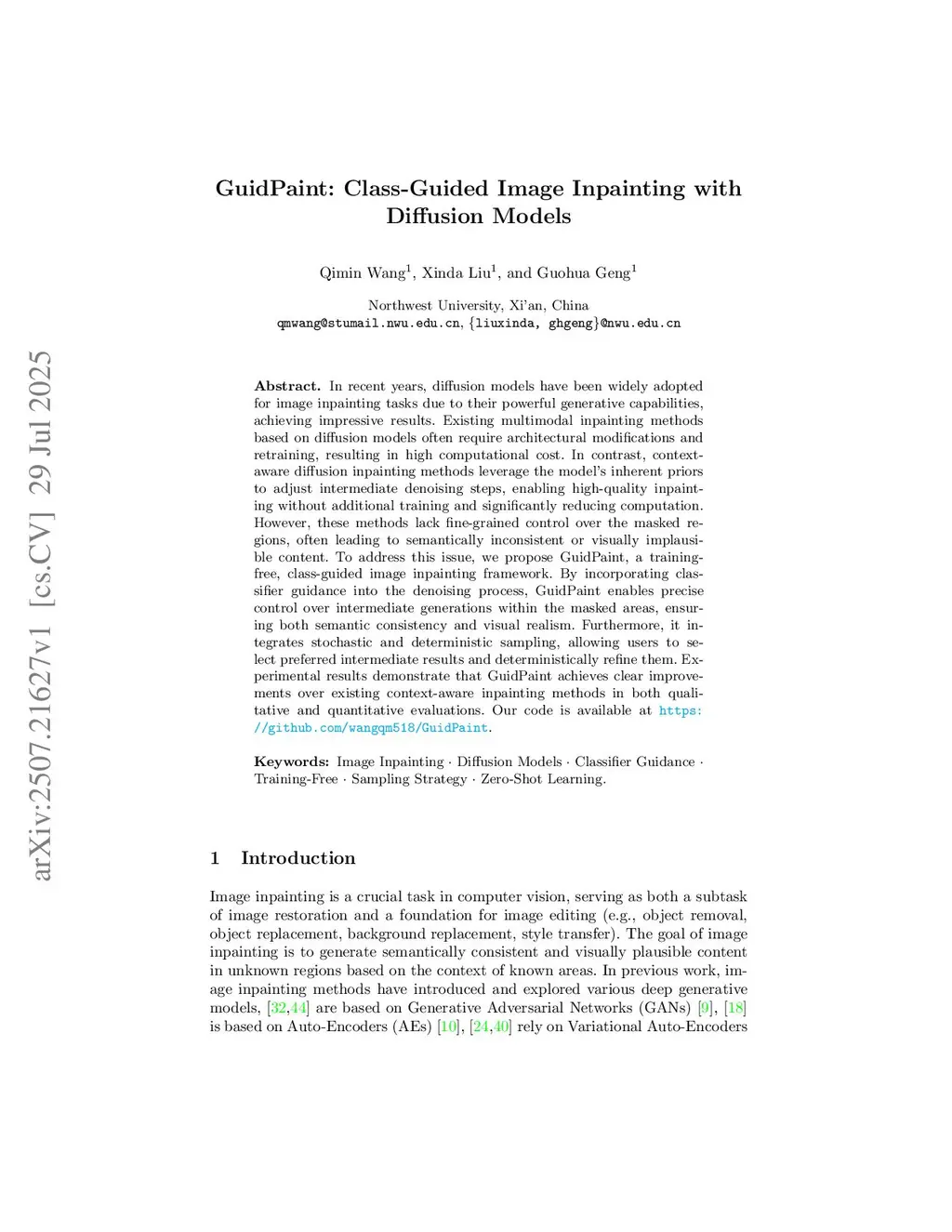 GuidPaint: Class-Guided Image Inpainting with Diffusion Models