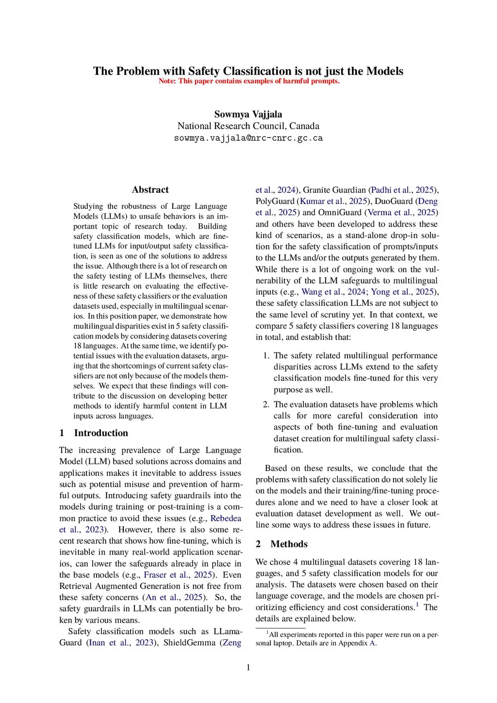 Studying the robustness of Large Language Models (LLMs) to unsafe behaviors is an important topic of research today. Building safety classification models or guard models, which are fine-tuned models for input/output safety classification for LLMs, is seen as one of the solutions to address the issue. Although there is a lot of research on the safety testing of LLMs themselves, there is little research on evaluating the effectiveness of such safety classifiers or the evaluation datasets used for testing them, especially in multilingual scenarios. In this position paper, we demonstrate how multilingual disparities exist in 5 safety classification models by considering datasets covering 18 languages. At the same time, we identify potential issues with the evaluation datasets, arguing that the shortcomings of current safety classifiers are not only because of the models themselves. We expect that these findings will contribute to the discussion on developing better methods to identify harmful content in LLM inputs across languages.