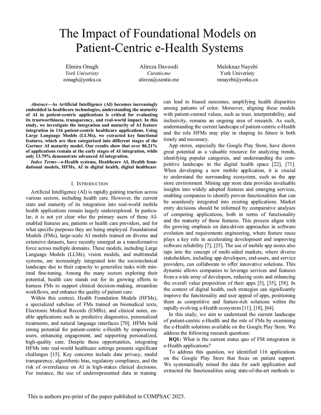 The Impact of Foundational Models on Patient-Centric e-Health Systems