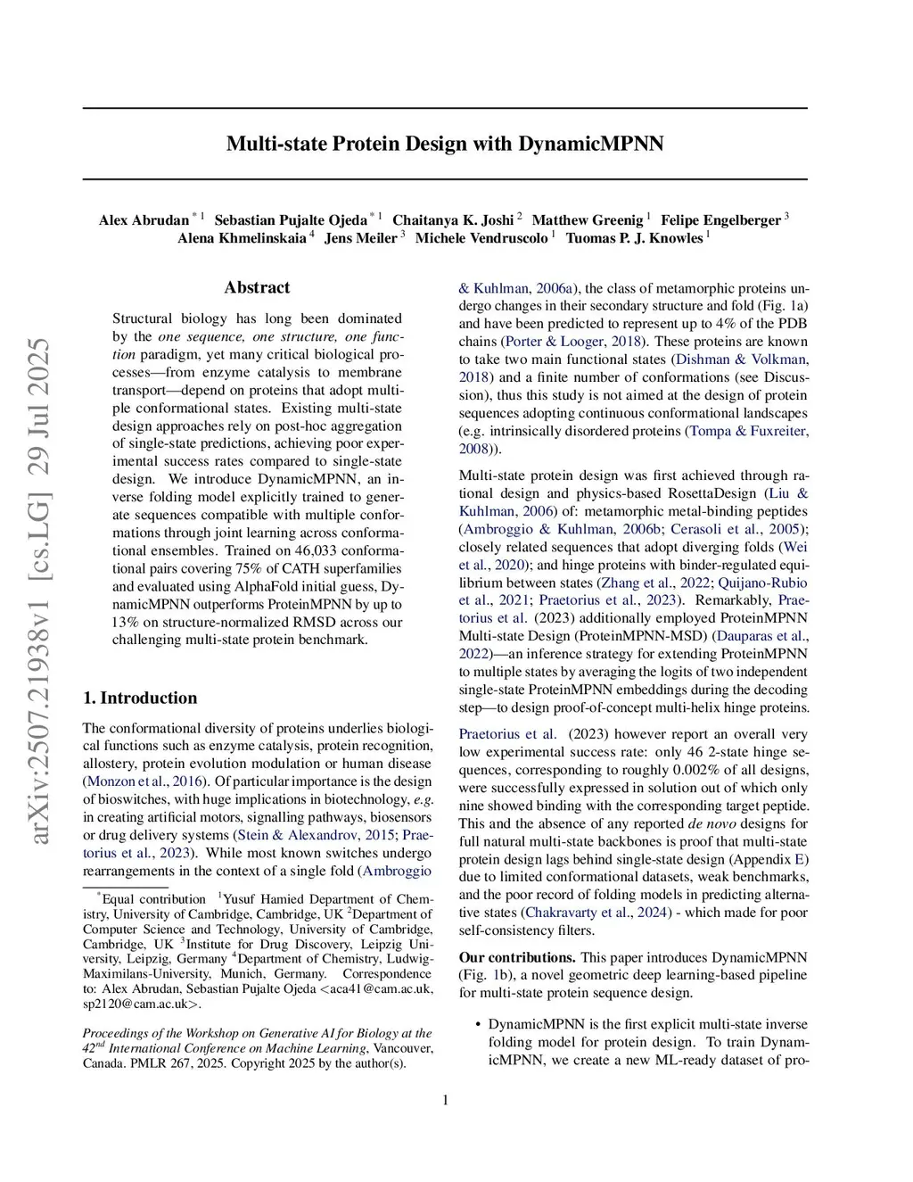 Structural biology has long been dominated by the one sequence, one structure, one function paradigm, yet many critical biological processes - from enzyme catalysis to membrane transport - depend on proteins that adopt multiple conformational states. Existing multi-state design approaches rely on post-hoc aggregation of single-state predictions, achieving poor experimental success rates compared to single-state design. We introduce DynamicMPNN, an inverse folding model explicitly trained to generate sequences compatible with multiple conformations through joint learning across conformational ensembles. Trained on 46,033 conformational pairs covering 75% of CATH superfamilies and evaluated using Alphafold 3, DynamicMPNN outperforms ProteinMPNN by up to 25% on decoy-normalized RMSD and by 12% on sequence recovery across our challenging multi-state protein benchmark.