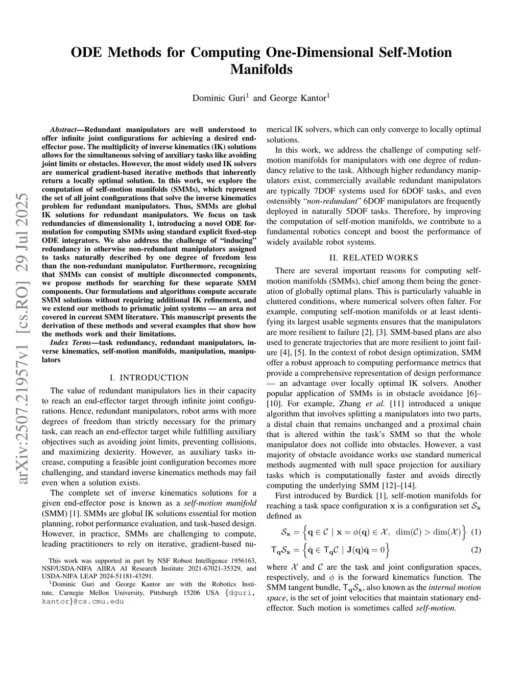 ODE Methods for Computing One-Dimensional Self-Motion Manifolds