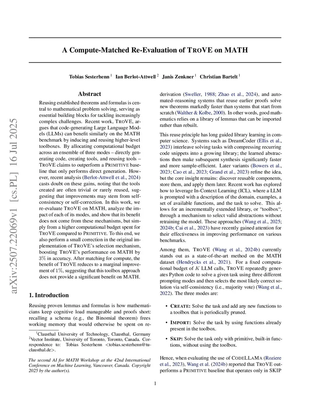 Reusing established theorems and formulas is central to mathematical problem solving, serving as essential building blocks for tackling increasingly complex challenges. Recent work, TroVE, argues that code-generating Large Language Models (LLMs) can benefit similarly on the MATH benchmark by inducing and reusing higher-level toolboxes. By allocating computational budget across an ensemble of three modes -- directly generating code, creating tools, and reusing tools -- TroVE claims to outperform a PRIMITIVE baseline that only performs direct generation. However, recent analysis (Berlot-Attwell et al., 2024) casts doubt on these gains, noting that the tools created are often trivial or rarely reused, suggesting that improvements may stem from self-consistency or self-correction. In this work, we re-evaluate TroVE on MATH, analyze the impact of each of its modes, and show that its benefit does not come from these mechanisms, but simply from a higher computational budget spent for TroVE compared to PRIMITIVE. To this end, we also perform a small correction in the original implementation of TroVE's selection mechanism, boosting TroVE's performance on MATH by 3\% in accuracy. After matching for compute, the benefit of TroVE reduces to a marginal improvement of 1\%, suggesting that this toolbox approach does not provide a significant benefit on MATH.