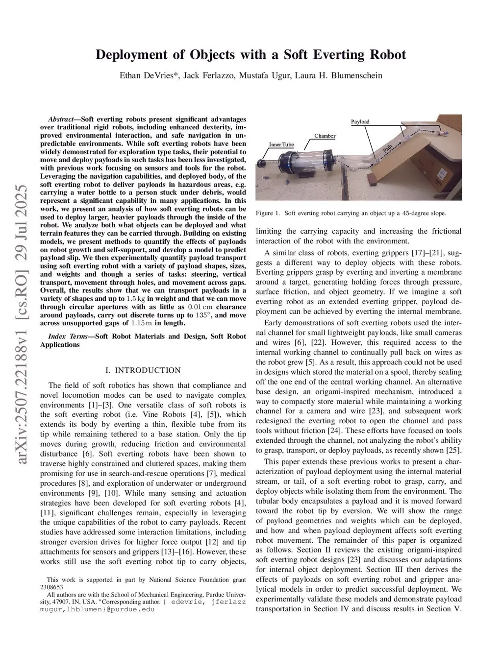 Soft everting robots present significant advantages over traditional rigid robots, including enhanced dexterity, improved environmental interaction, and safe navigation in unpredictable environments. While soft everting robots have been widely demonstrated for exploration type tasks, their potential to move and deploy payloads in such tasks has been less investigated, with previous work focusing on sensors and tools for the robot. Leveraging the navigation capabilities, and deployed body, of the soft everting robot to deliver payloads in hazardous areas, e.g. carrying a water bottle to a person stuck under debris, would represent a significant capability in many applications. In this work, we present an analysis of how soft everting robots can be used to deploy larger, heavier payloads through the inside of the robot. We analyze both what objects can be deployed and what terrain features they can be carried through. Building on existing models, we present methods to quantify the effects of payloads on robot growth and self-support, and develop a model to predict payload slip. We then experimentally quantify payload transport using soft everting robot with a variety of payload shapes, sizes, and weights and though a series of tasks: steering, vertical transport, movement through holes, and movement across gaps. Overall, the results show that we can transport payloads in a variety of shapes and up to 1.5kg in weight and that we can move through circular apertures with as little as 0.01cm clearance around payloads, carry out discrete turns up to 135 degrees, and move across unsupported gaps of 1.15m in length.