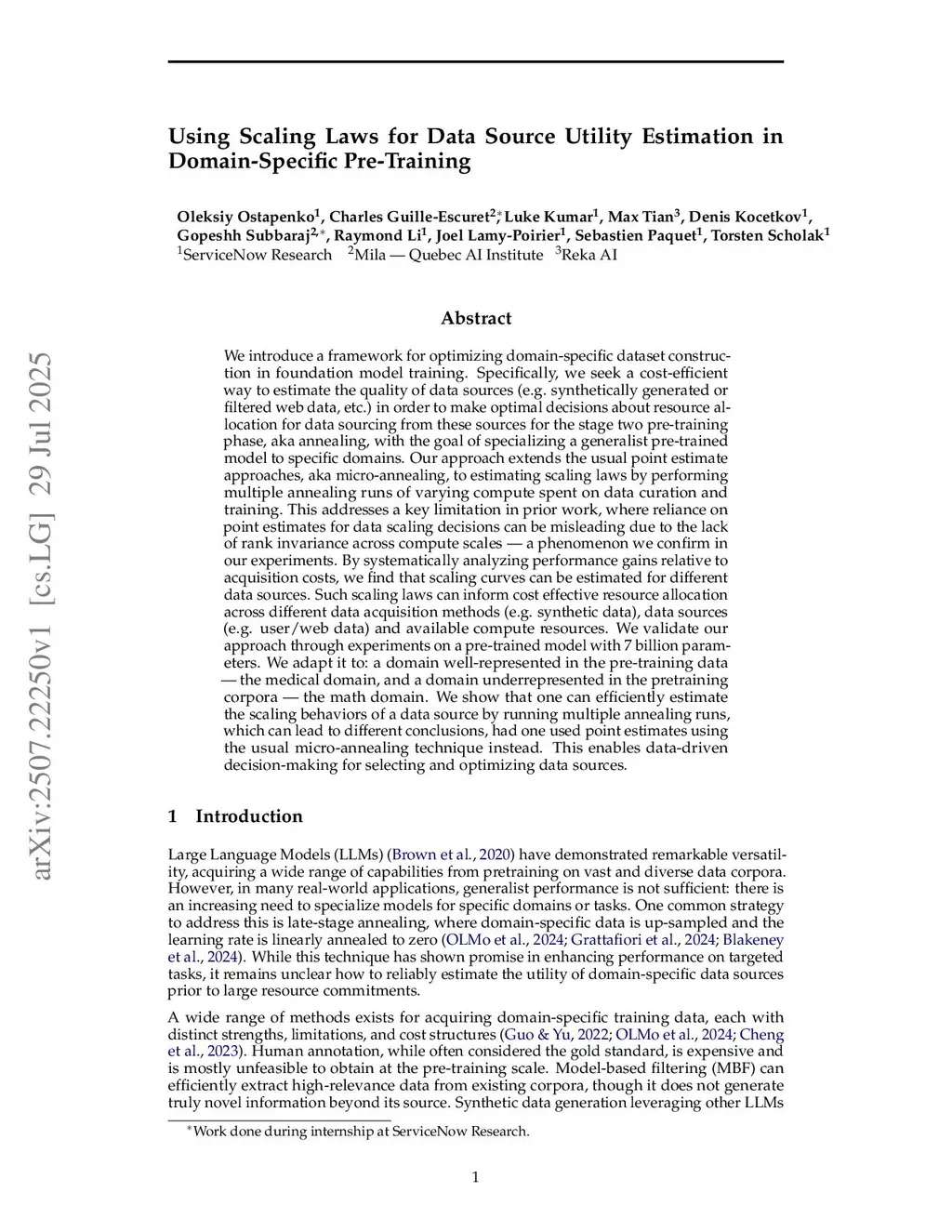 We introduce a framework for optimizing domain-specific dataset construction in foundation model training. Specifically, we seek a cost-efficient way to estimate the quality of data sources (e.g. synthetically generated or filtered web data, etc.) in order to make optimal decisions about resource allocation for data sourcing from these sources for the stage two pre-training phase, aka annealing, with the goal of specializing a generalist pre-trained model to specific domains. Our approach extends the usual point estimate approaches, aka micro-annealing, to estimating scaling laws by performing multiple annealing runs of varying compute spent on data curation and training. This addresses a key limitation in prior work, where reliance on point estimates for data scaling decisions can be misleading due to the lack of rank invariance across compute scales -- a phenomenon we confirm in our experiments. By systematically analyzing performance gains relative to acquisition costs, we find that scaling curves can be estimated for different data sources. Such scaling laws can inform cost effective resource allocation across different data acquisition methods (e.g. synthetic data), data sources (e.g. user or web data) and available compute resources. We validate our approach through experiments on a pre-trained model with 7 billion parameters. We adapt it to: a domain well-represented in the pre-training data -- the medical domain, and a domain underrepresented in the pretraining corpora -- the math domain. We show that one can efficiently estimate the scaling behaviors of a data source by running multiple annealing runs, which can lead to different conclusions, had one used point estimates using the usual micro-annealing technique instead. This enables data-driven decision-making for selecting and optimizing data sources.