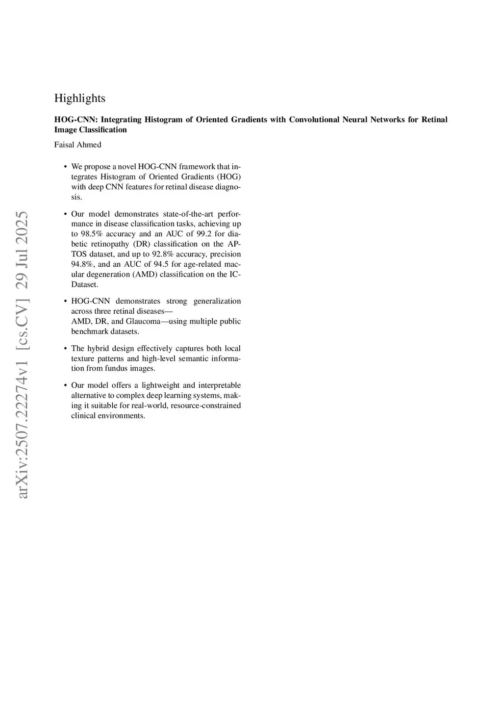 HOG-CNN: Integrating Histogram of Oriented Gradients with Convolutional Neural Networks for Retinal Image Classification
