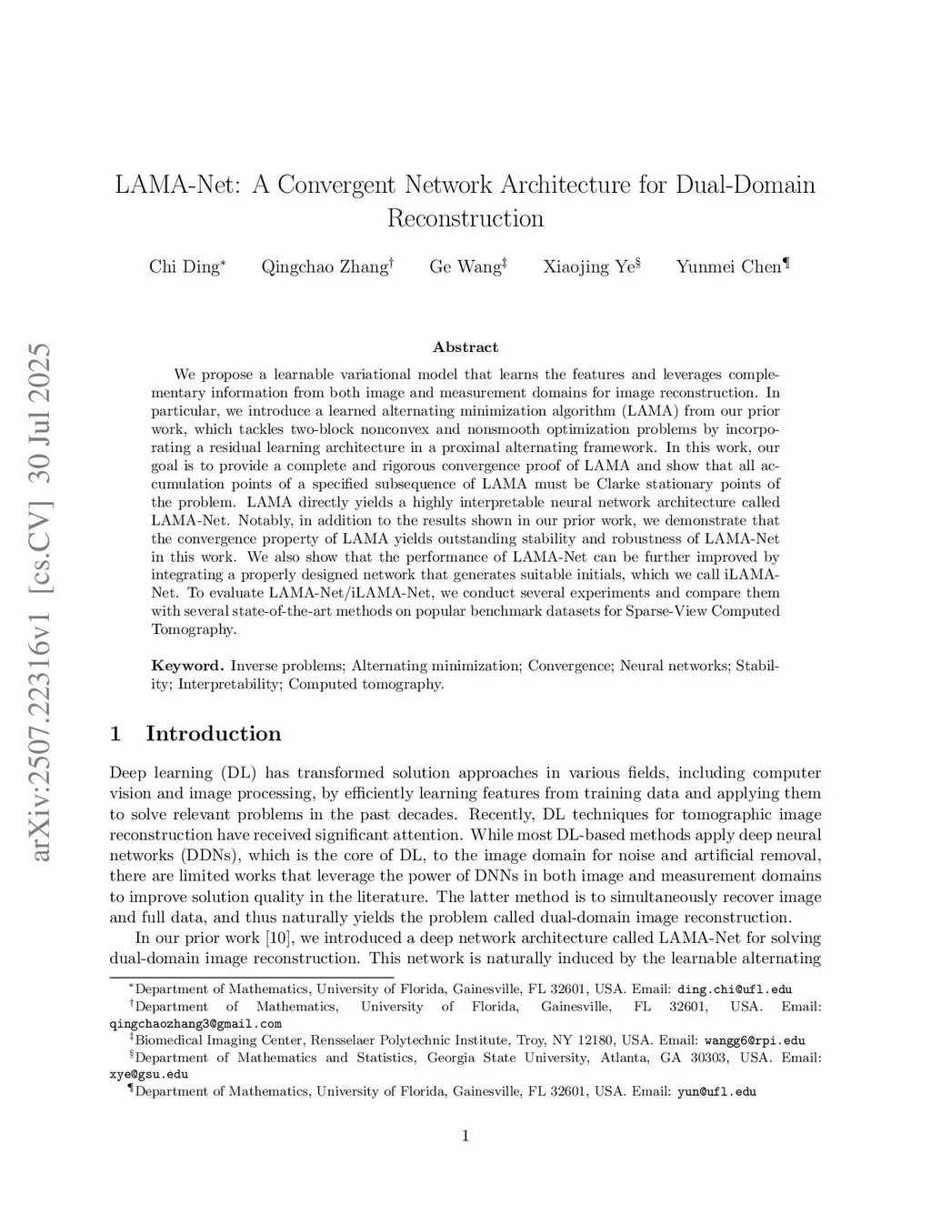 LAMA-Net: A Convergent Network Architecture for Dual-Domain Reconstruction