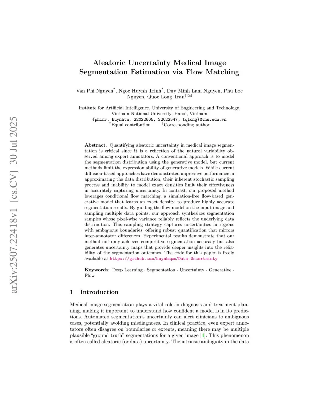 Aleatoric Uncertainty Medical Image Segmentation Estimation via Flow Matching