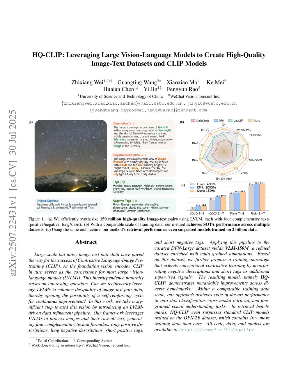 HQ-CLIP: Leveraging Large Vision-Language Models to Create High-Quality Image-Text Datasets and CLIP Models