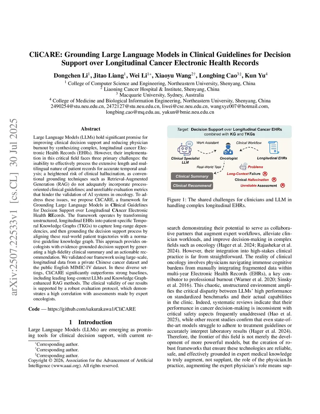 CliCARE: Grounding Large Language Models in Clinical Guidelines for Decision Support over Longitudinal Cancer Electronic Health Records