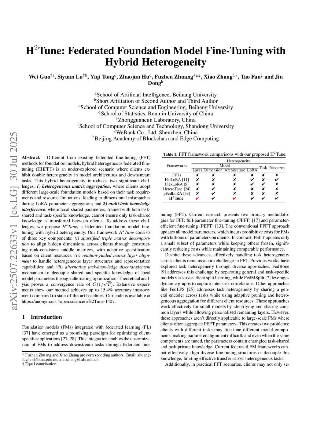 H2Tune: Federated Foundation Model Fine-Tuning with Hybrid Heterogeneity