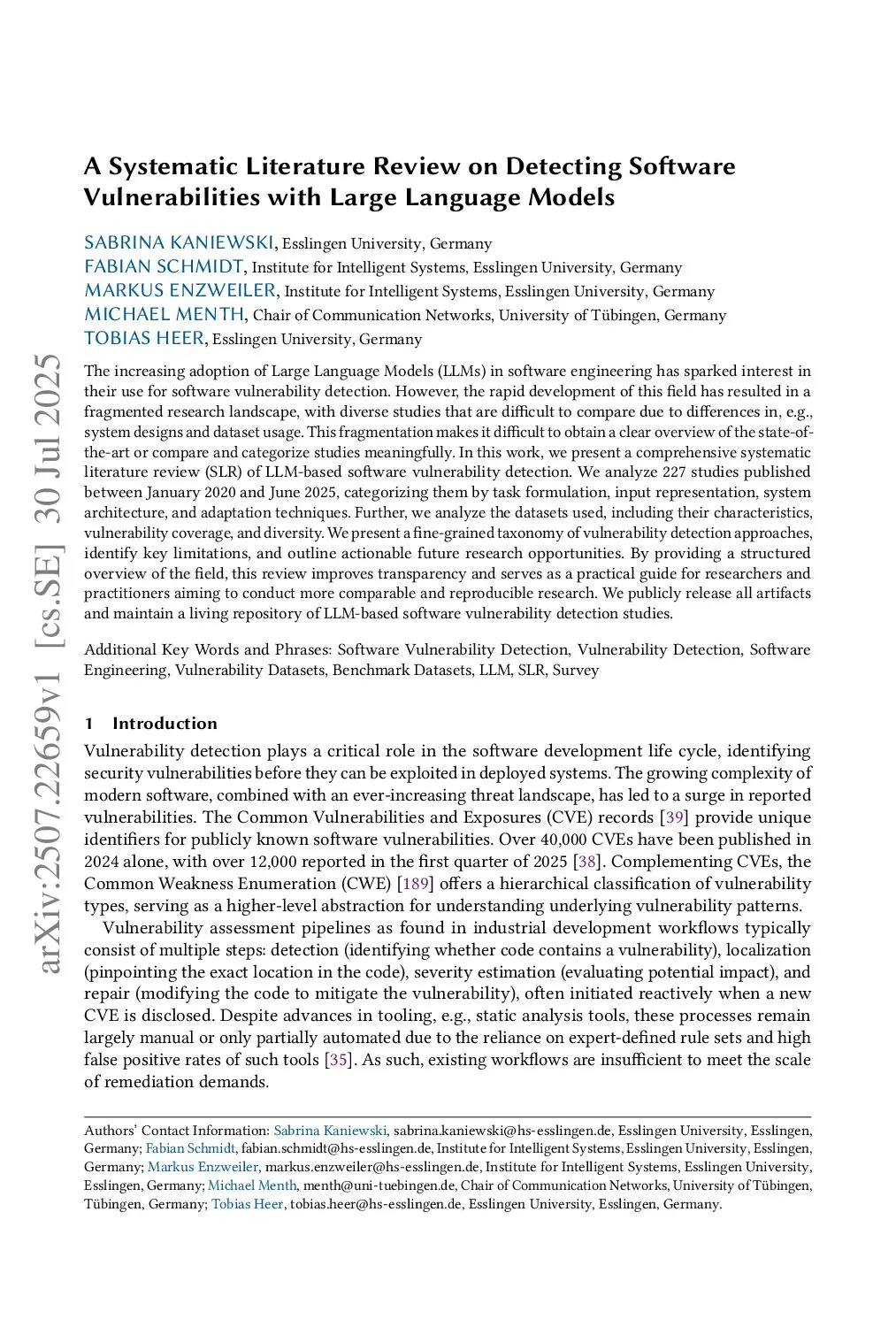 A Systematic Literature Review on Detecting Software Vulnerabilities with Large Language Models
